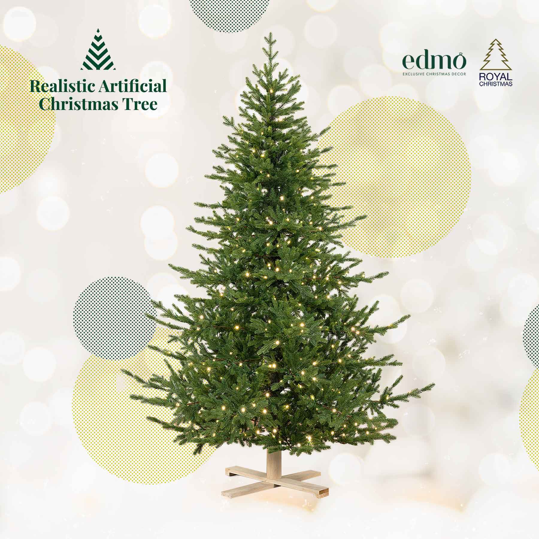 Gli alberi di Natale artificiali al 100% PE sono indistinguibili da un albero vero grazie alle punte morbide, alla bella forma degli aghi ed alla grana marrone nei rami.