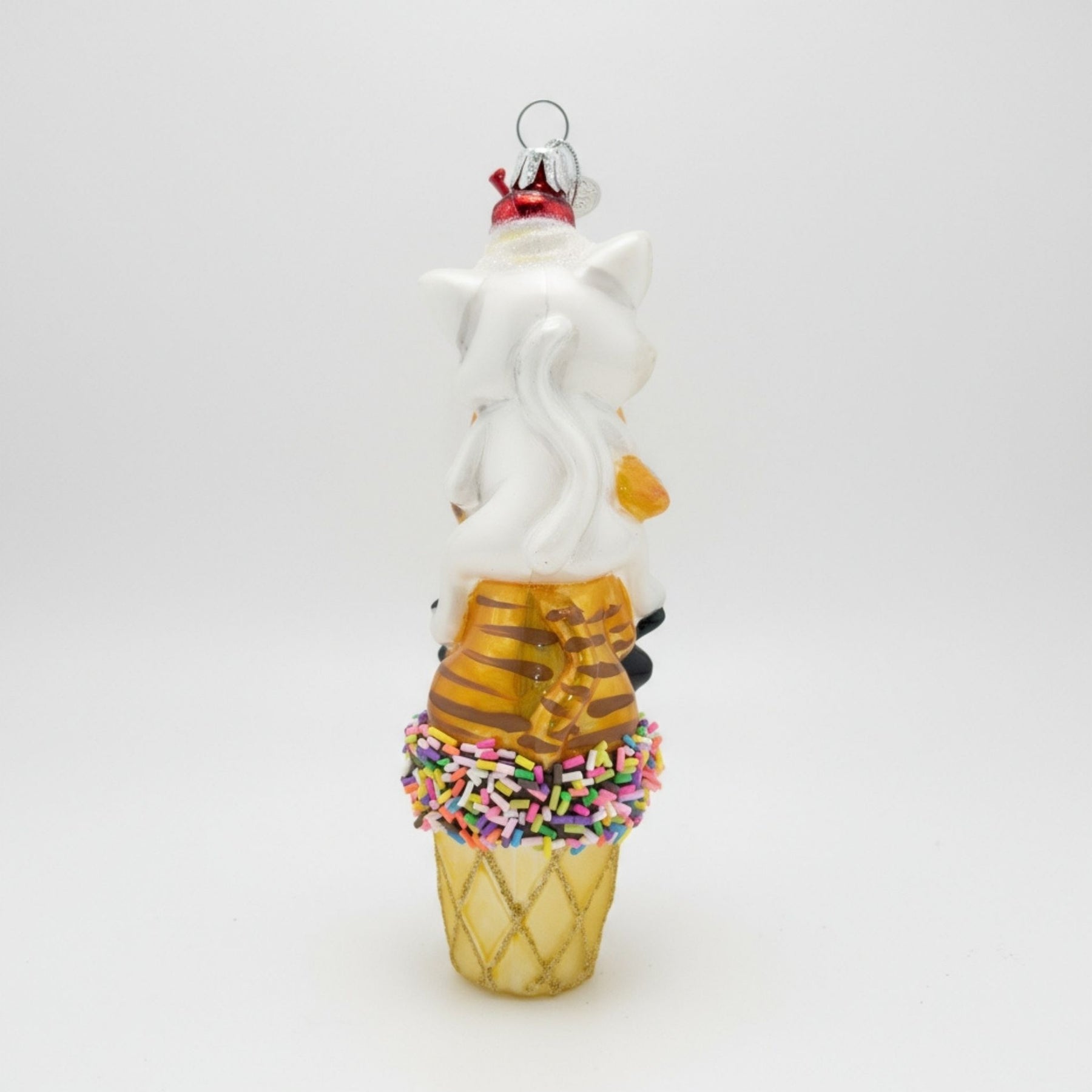 Bring charm and whimsy to your holiday season with this hand-painted glass Christmas ornament featuring three adorable kittens stacked on a colorful ice-cream cone. Crafted with exquisite attention to detail, each piece is individually painted by hand, making every ornament a one-of-a-kind collectible for cat lovers and Christmas enthusiasts alike.